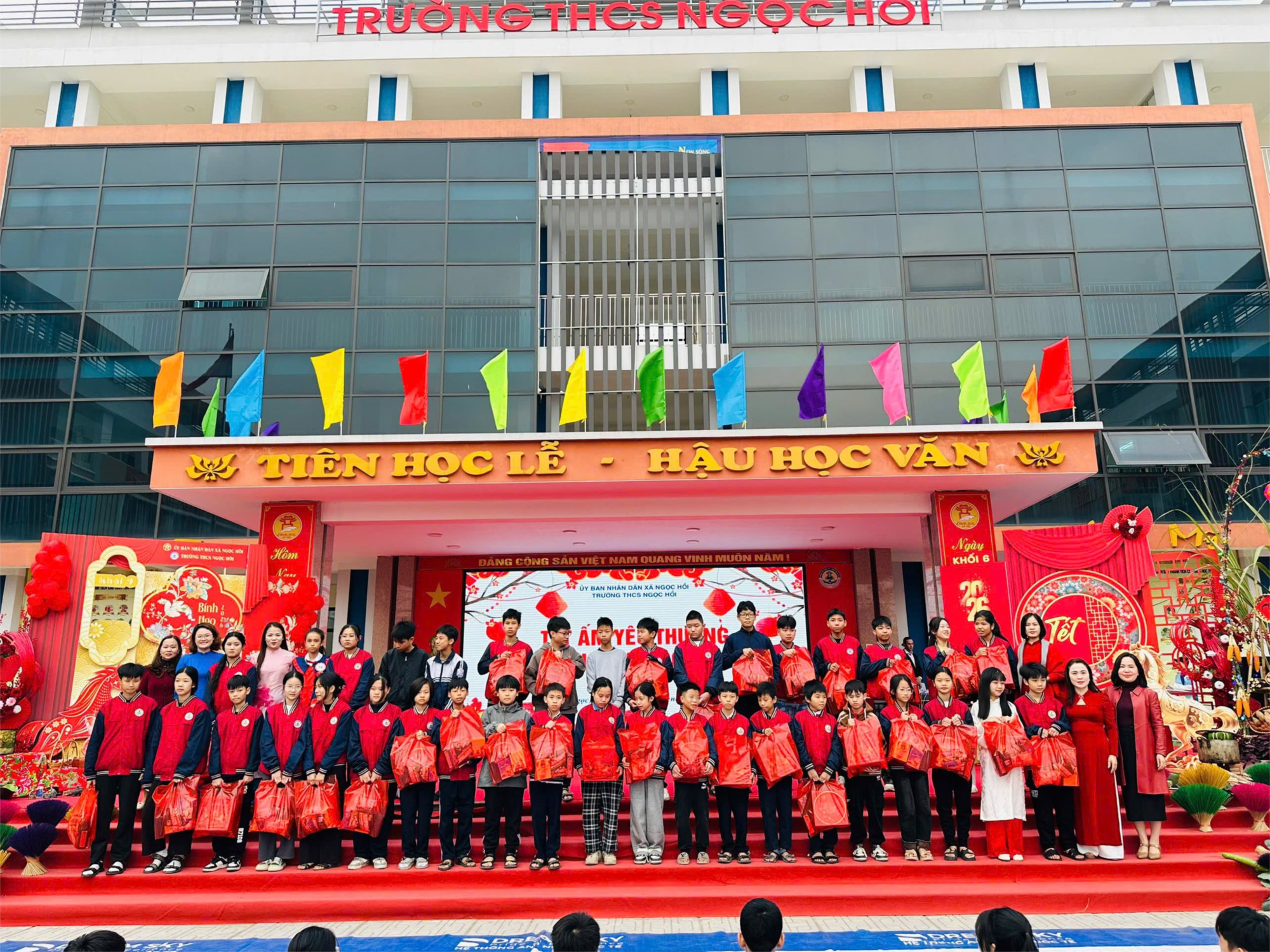 Tiếp nối chương trình là phần trao quà Tết yêu thương dành cho những học sinh có hoàn cảnh khó khăn nhưng luôn nỗ lực vươn lên trong học tập và rèn luyện. Những món quà xuân không chỉ mang giá trị vật chất mà còn gửi gắm thông điệp sẻ chia, tiếp thêm niềm tin và động lực để các em đón một mùa xuân ấm áp, đủ đầy yêu thương.