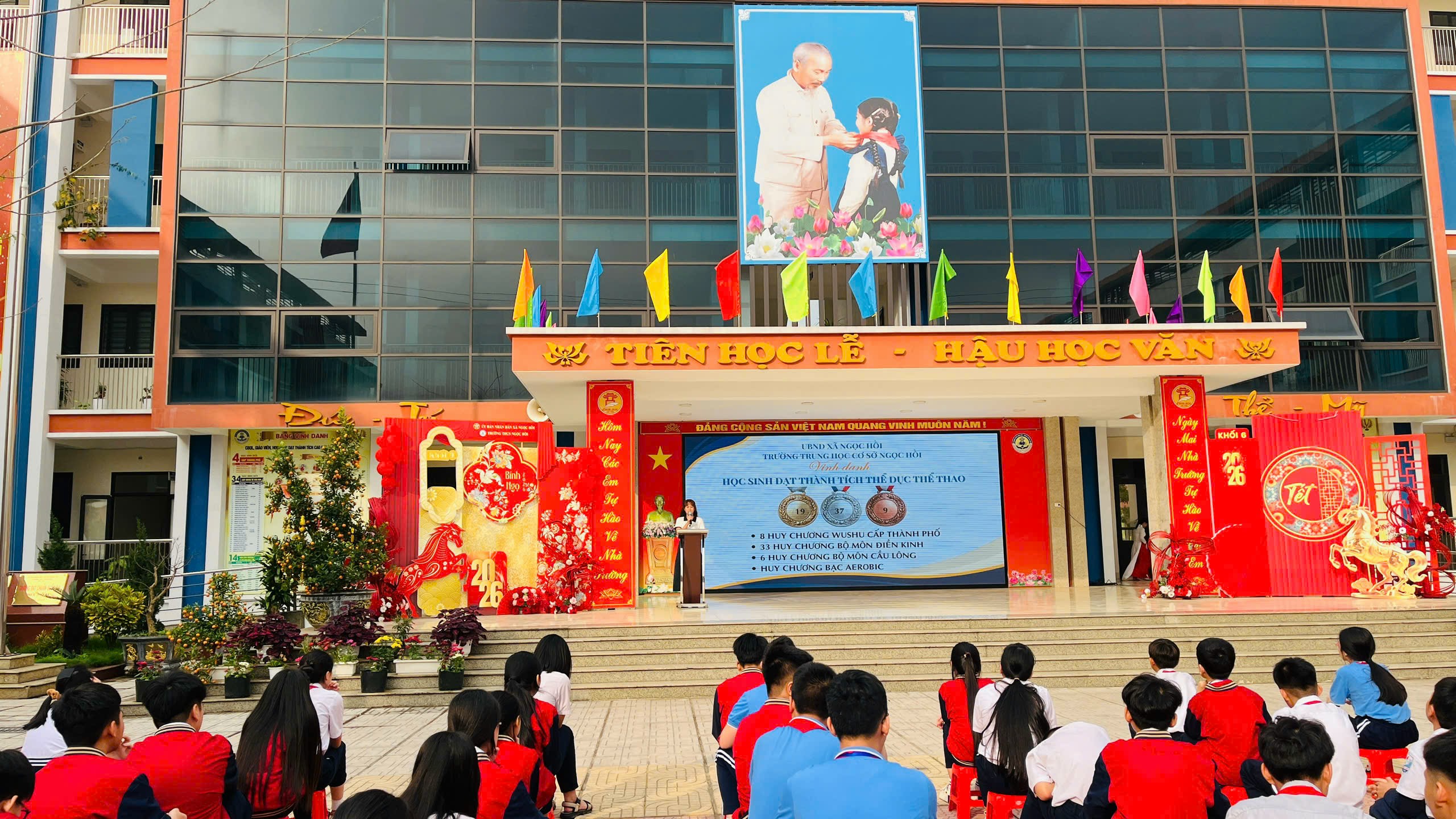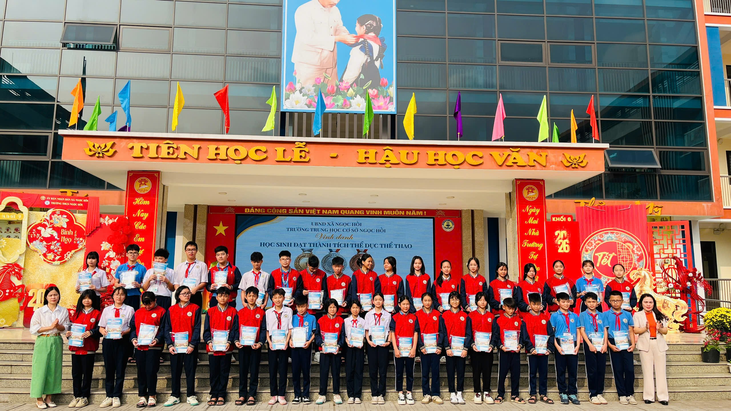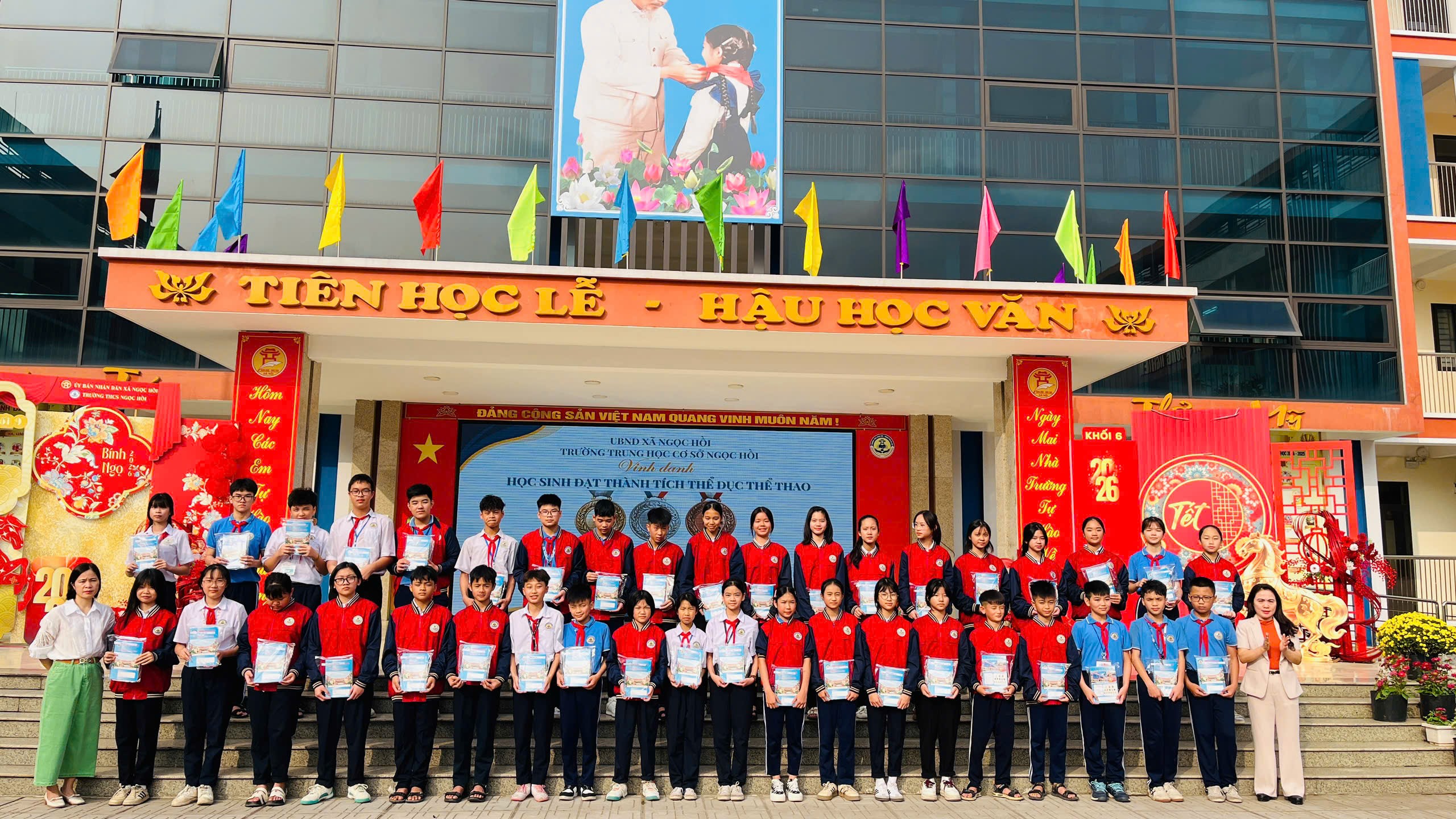 Khép lại chương trình là phần trao thưởng của Ban Giám hiệu nhà trường dành cho các học sinh đạt thành tích xuất sắc trong các giải thể dục thể thao. Những tràng pháo tay chúc mừng đã tiếp thêm động lực để các em tiếp tục rèn luyện, phấn đấu trong học tập và hoạt động phong trào.