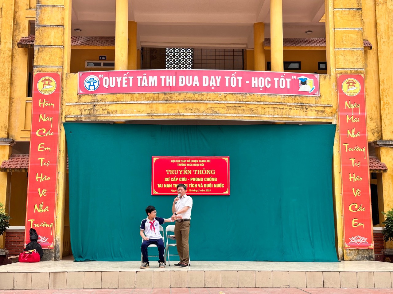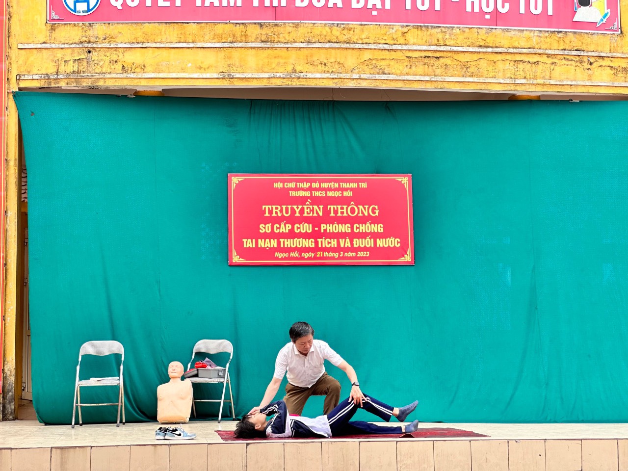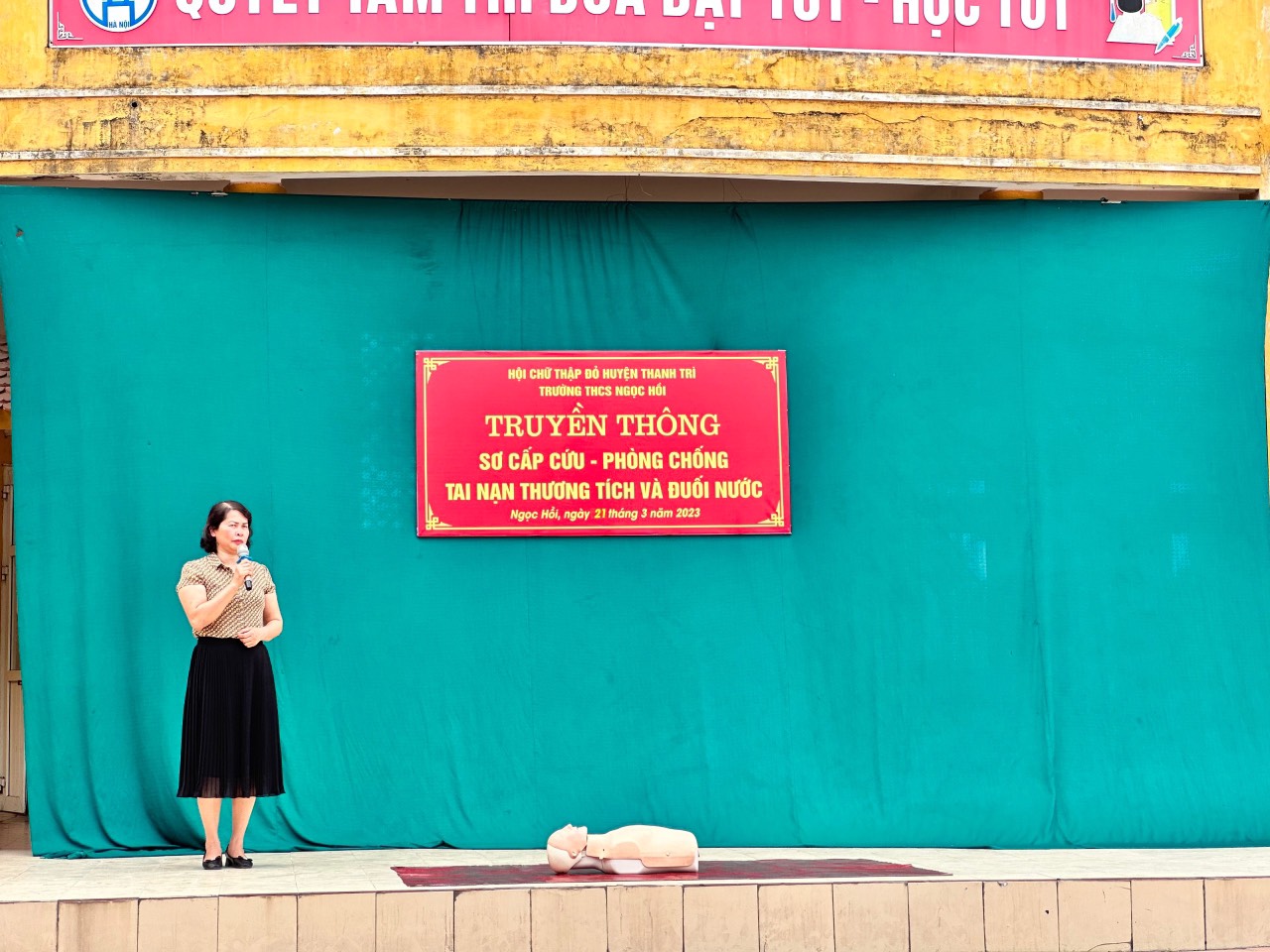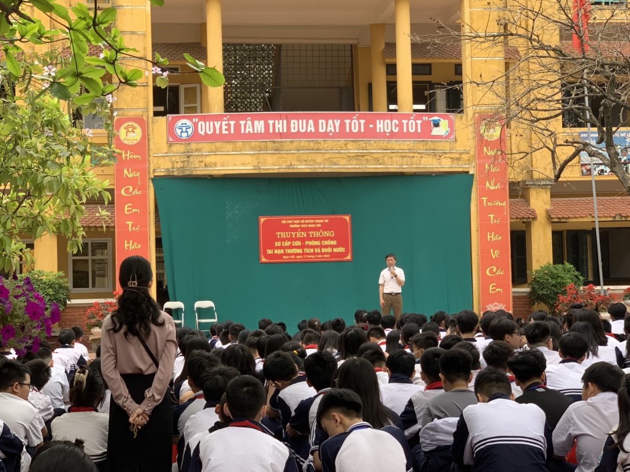 Thực hiện kế hoạch năm học, ngày 21/03/2023 trường THCS Ngọc Hồi tổ chức tuyên truyền và hướng dẫn tới toàn thể cán bộ, giáo viên, nhân viên và tất cả các học sinh trong nhà trường kiến thức về sơ cấp cứu ban đầu, cách phòng chống đuối nước và tai nạn thương tích. Đây là một hoạt động hết sức cần thiết đối với học sinh hiện nay, đặc biệt là trong điều kiện giao thông đông đúc, mùa hè chuẩn bị bắt đầu, đặc điểm tâm lý lứa tuổi...