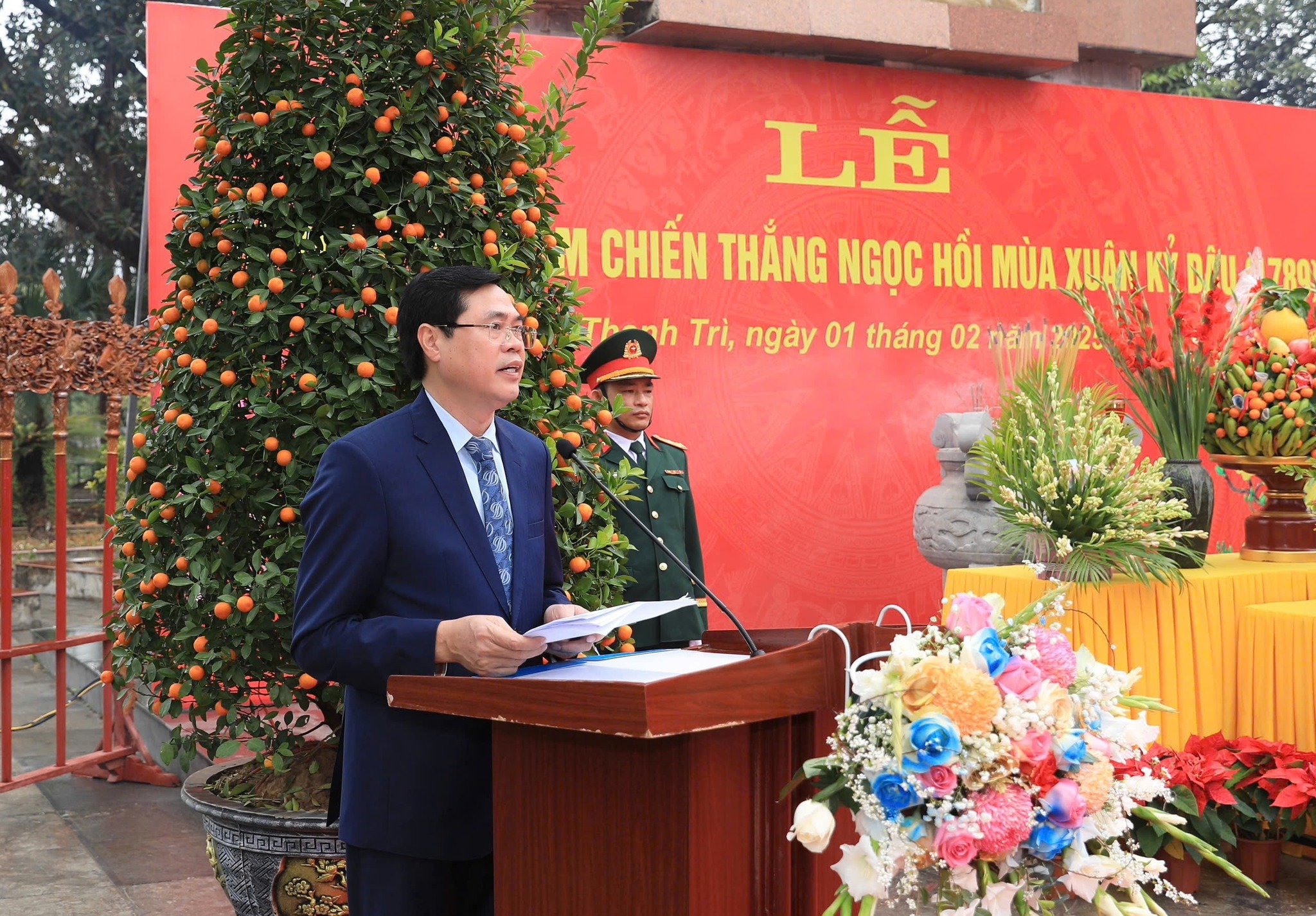 Trình bày diễn văn tại lễ kỷ niệm, Phó Bí thư Huyện ủy, Chủ tịch UBND huyện Thanh Trì Nguyễn Xuân Phong cho biết: Vào mùa Xuân năm Kỷ Dậu (1789), Nghĩa quân Tây sơn dưới sự lãnh đạo của người anh hùng áo vải cờ đào Quang Trung Nguyễn Huệ đã lập nên một kỳ tích vẻ vang, phá tan tuyến phòng thủ của quân Thanh và cùng cánh quân phía Tây Nam mở toang cửa tiến vào kinh thành Thăng Long xoá bỏ ách đô hộ của quân xâm lược nhà Thanh và chế độ phong kiến cuối thế kỉ 18. Thống nhất giang sơn, dành nền độc lập, đem lại cuộc sống yên bình cho Nhân dân. Nổi bật trong chiến công chung đó là trận hành quân thần tốc đại phá đồn Ngọc Hồi - cứ điểm phòng ngự quan trọng nhất trong hệ thống phòng thủ của Tôn Sĩ Nghị và của quân Thanh.