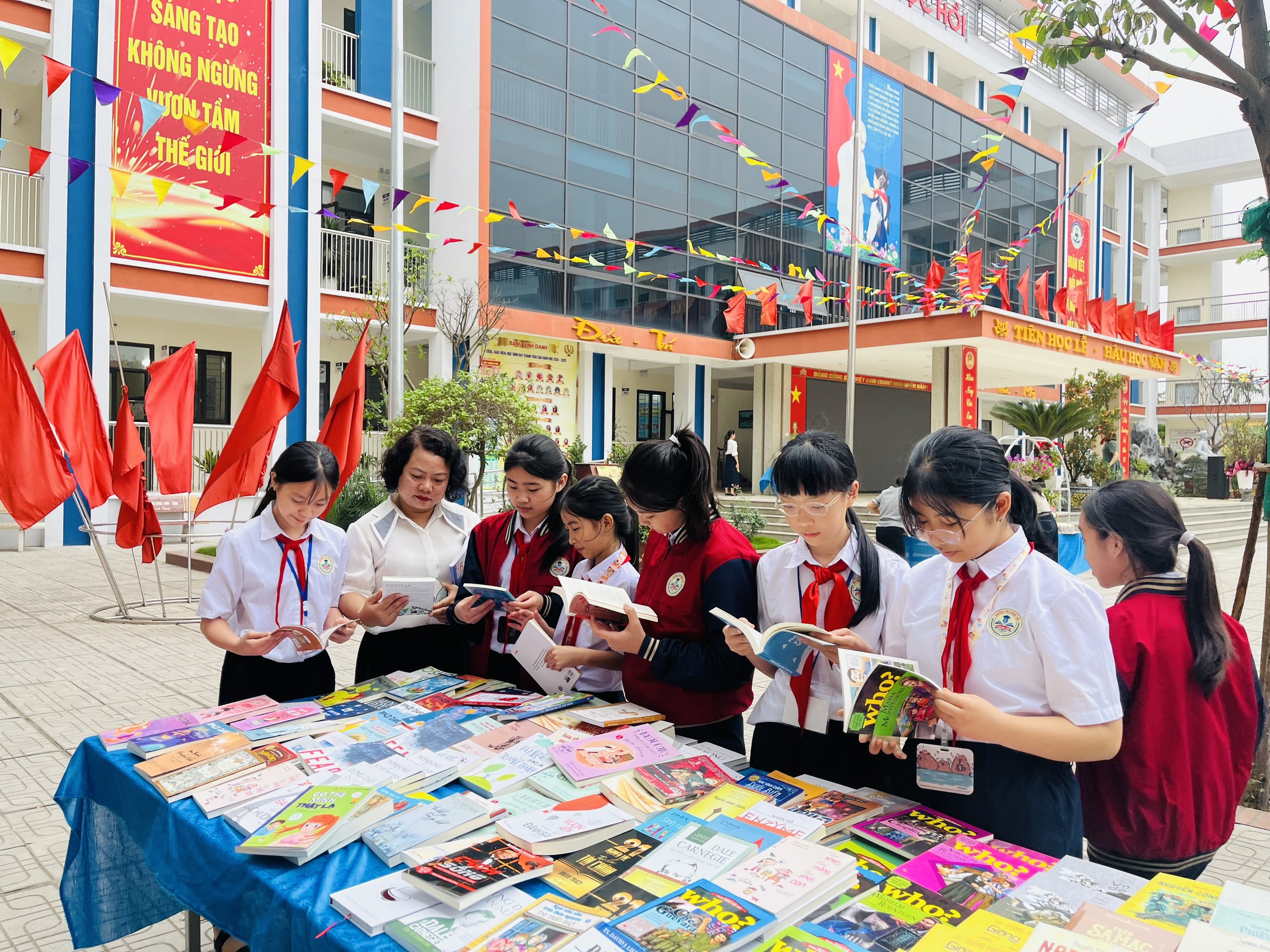 Ngày hội diễn ra trong không khí sôi nổi với nhiều hoạt động hấp dẫn như: triển lãm sách theo chủ đề, thi giới thiệu sách hay, vẽ tranh theo nội dung sách và quyên góp sách xây dựng tủ sách dùng chung cho thư viện nhà trường. Các hoạt động không chỉ giúp học sinh tiếp cận kho tàng tri thức phong phú mà còn rèn luyện kỹ năng thuyết trình, sáng tạo và làm việc nhóm. Đặc biệt, phần giao lưu đã thổi bùng niềm đam mê đọc và viết trong lòng các em học sinh.
