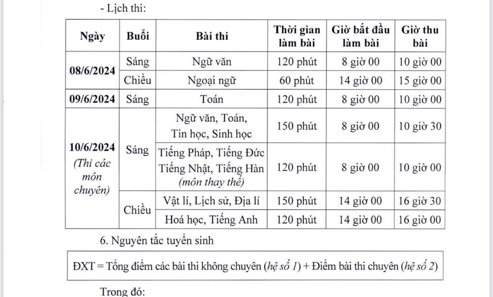 Cụ thể, sáng 8/6, thí sinh thi môn Ngữ văn, thời gian làm bài 120 phút. Buổi chiều, thí sinh làm bài thi môn Ngoại ngữ, thời gian làm bài 60 phút.