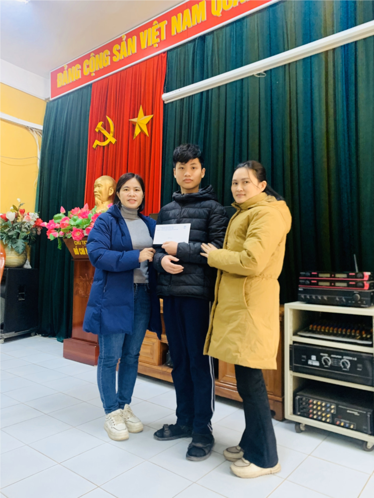 Cô Trần Thị Thanh Hoa - Hiệu phó Nhà trường và em Nguyễn Tiến Đạt lớp 8A1
